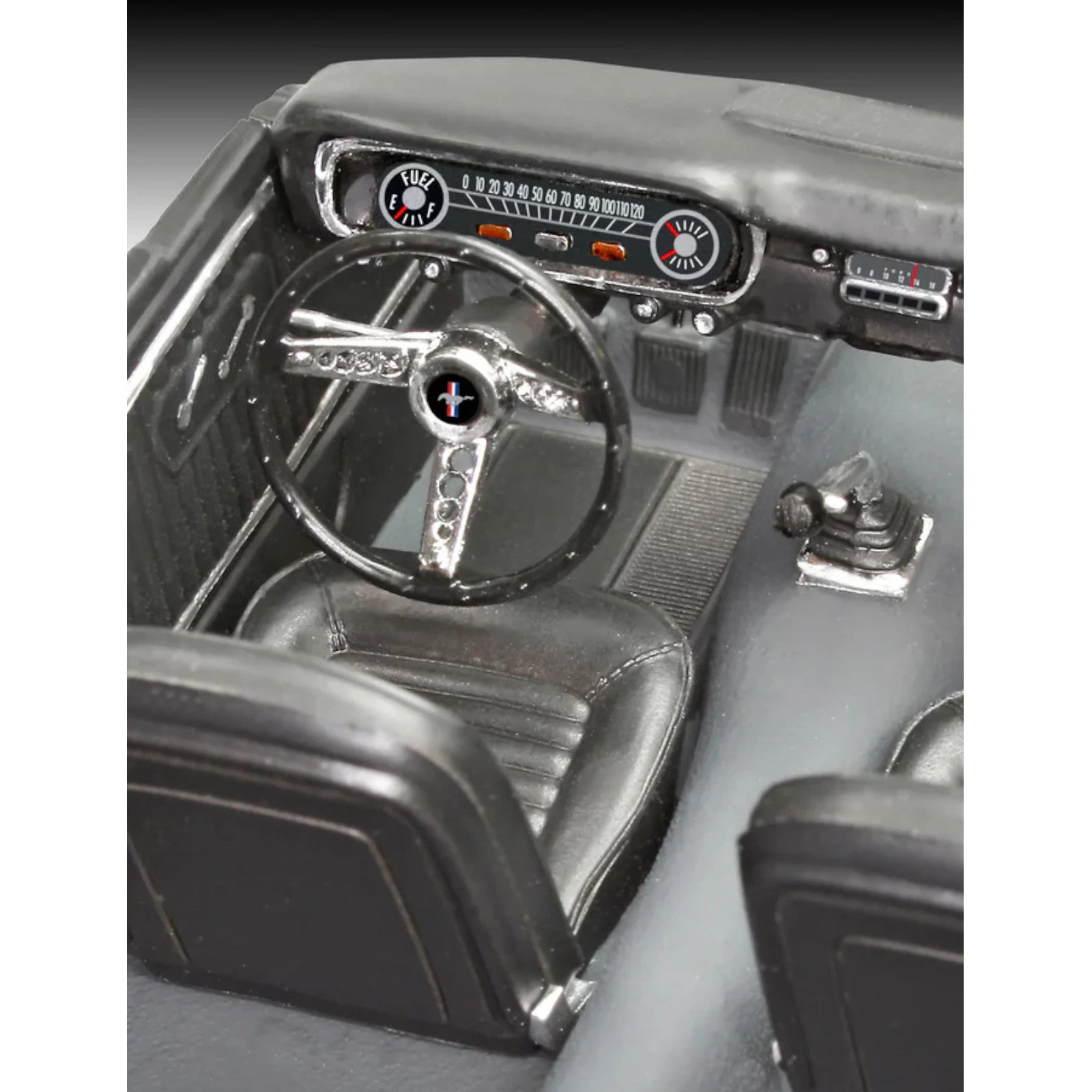 Detailed interior with authentic instrument panel and structured seats